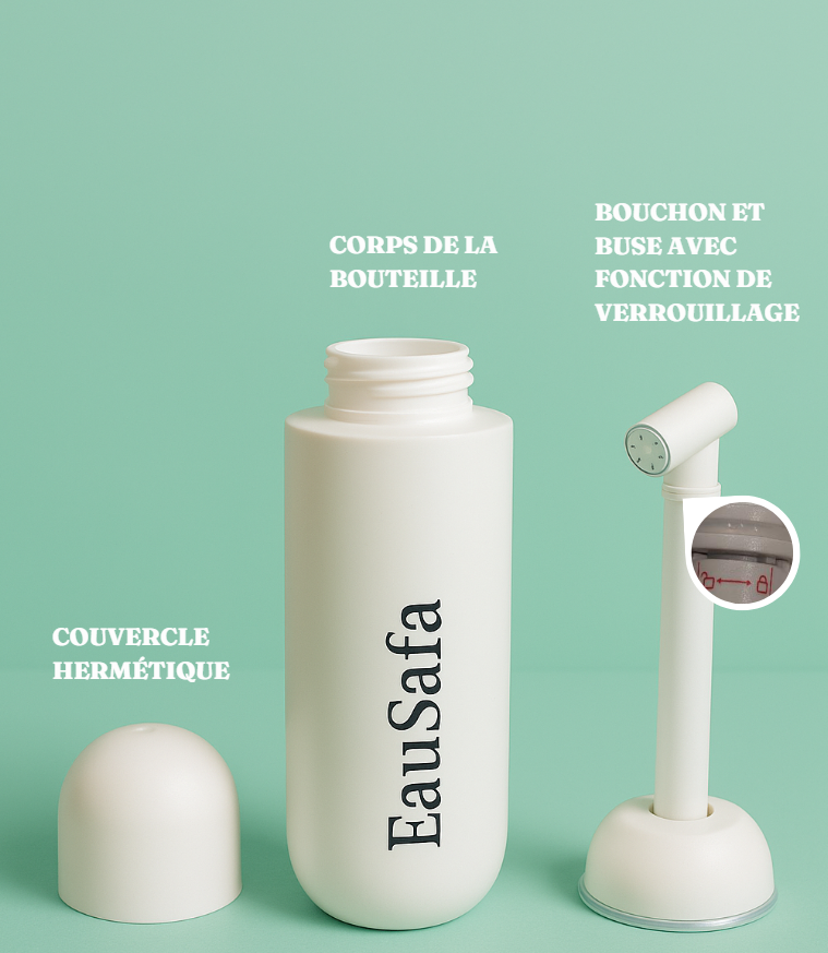 Qu’est-ce que c’est ? Le bidet portable Eausafa est un dispositif manuel, compact et pratique, conçu pour un nettoyage intime à l’eau, en toute simplicité et où que vous soyez.
